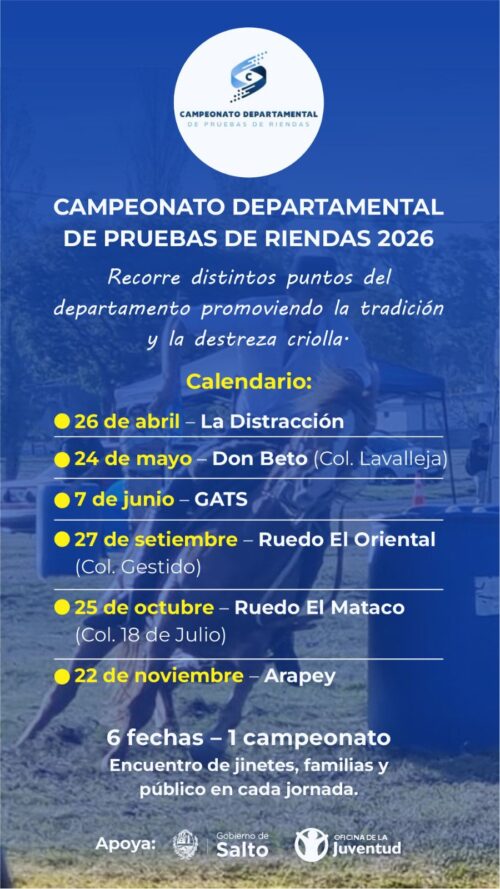 El campeonato cuenta con el apoyo de la Secretaría de la Juventud del Gobierno de Salto, reafirmando el compromiso institucional con las actividades tradicionales y el desarrollo de propuestas deportivas y culturales en el territorio.