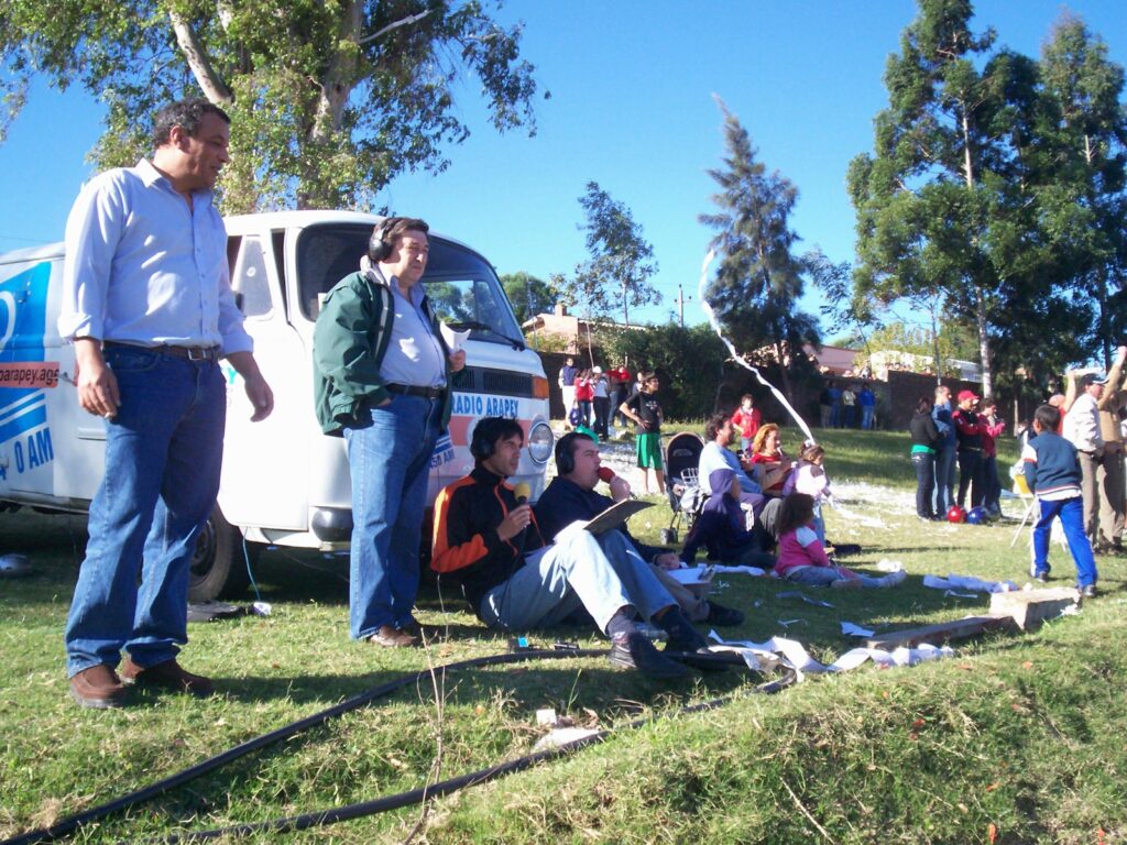 A los pocos domingos ocurrió que el operador del fútbol terminó su turno y el operador de la radio no había llegado. El operador del fútbol se fue y, cuando le pregunté si no tenía que esperar al otro, me respondió que no era empleado de la radio, que solo trabajaba en el fútbol. Puso un disco de pasta al aire y se fue. En aquel tiempo no había computadoras ni nada automatizado: eran bandejas de vinilo para la música y cassetteras para las tandas y artísticas.